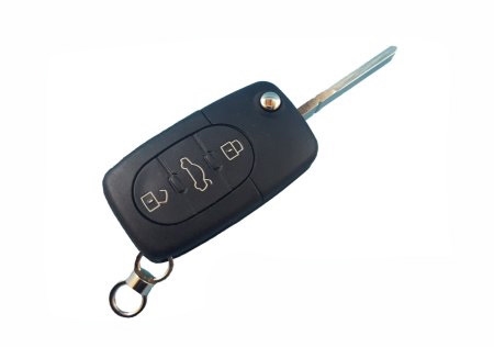Audi nøgle med fjernbetjening og 3 knapper. Passer efter indkodning direkte til din Audi uden ekstra montering.